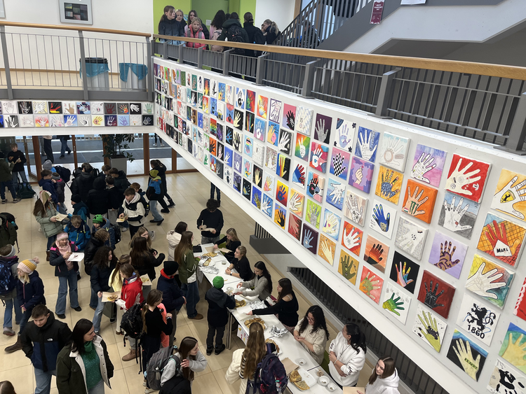Anlässlich des Deutsch-Französischen Tages am 22. Januar fand in der Aula ein Crêpes-Verkauf statt. Außerdem gab es weitere Aktionen wie ein Quiz und verschiedene Mitmachangebote rund um Frankreich und Deutschland.