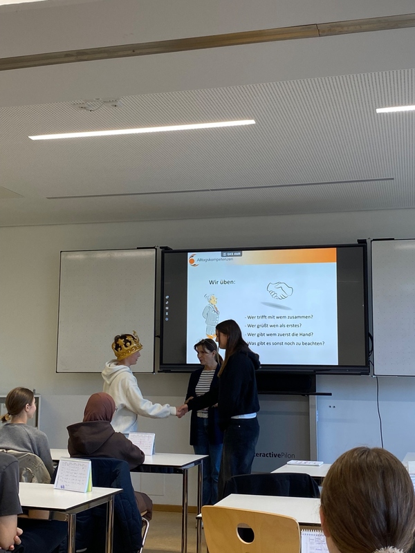 Die Schülerinnen und Schüler der 9. Klassen erhielten bei Frau Riesch eine wertvolle Vorbereitung auf ihr bevorstehendes Betriebspraktikum. Mit viel Engagement und Freude trainierten sie in verschiedenen praktischen Übungen die wichtigsten Grundlagen für ein sicheres und selbstbewusstes Auftreten sowohl im Berufs- als auch im Privatleben.