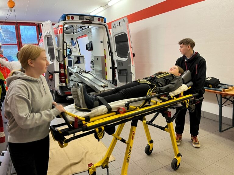 Am Ausbildungstag der Schulsanitäter wurden am Montagvormittag grundlegende Themen wie Wundversorgung, Erste-Hilfe-Maßnahmen bei akuten Erkrankungen und Reanimation wiederholt. Am Nachmittag folgte ein spannender Besuch bei der BRK-Bereitschaft Au, bei dem die Schüler das Anlegen eines EKGs, die Herzdruckmassage mit Defibrillator-Einsatz…