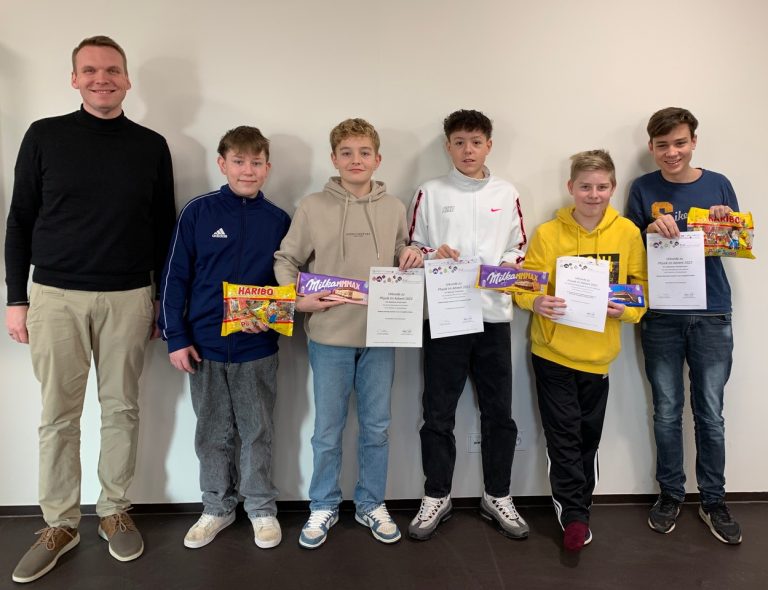 Während der Vorweihnachtszeit hat die Klasse 8a erfolgreich am Wettbewerb „Physik im Advent“ (PiA) teilgenommen. Täglich wurde in einem Videoclip eine physikalische Aufgabe oder ein einfaches Experiment präsentiert, das zu Hause durchgeführt werden konnte. Die Schülerinnen und Schüler konnten die…