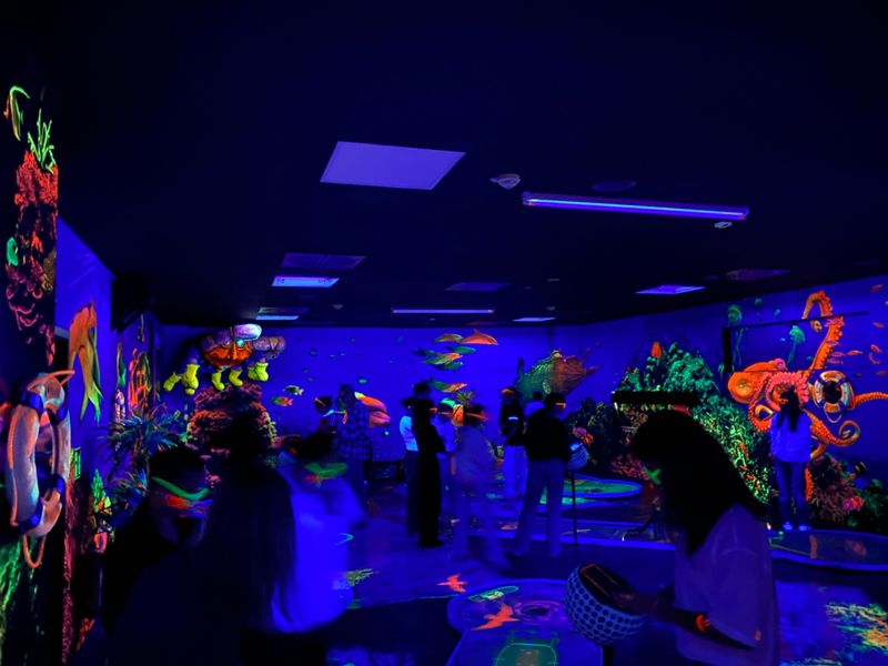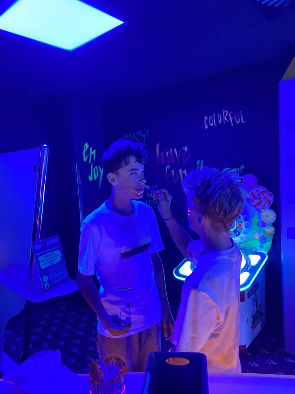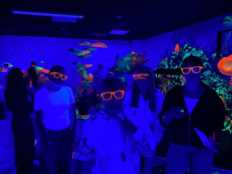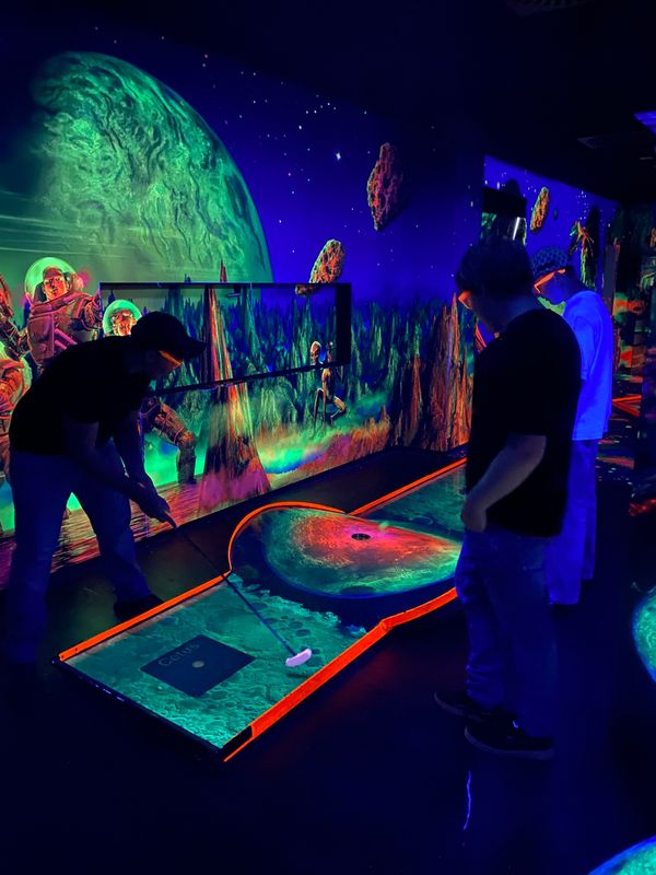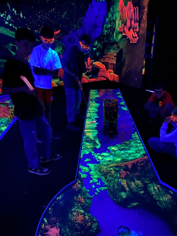 Die 8. Klassen verbrachten ihren Wandertag mit Minigolf und Pit Pat, jedoch nicht unter gewohnten Bedingungen, sondern ausgestattet mit 3D Brillen und in Neonfarben geschminkt. Auf abwechslungsreich gestalteten Bahnen konnten die Schülerinnen und Schüler ihr Ballgeschick im Schwarzlicht unter Beweis stellen.